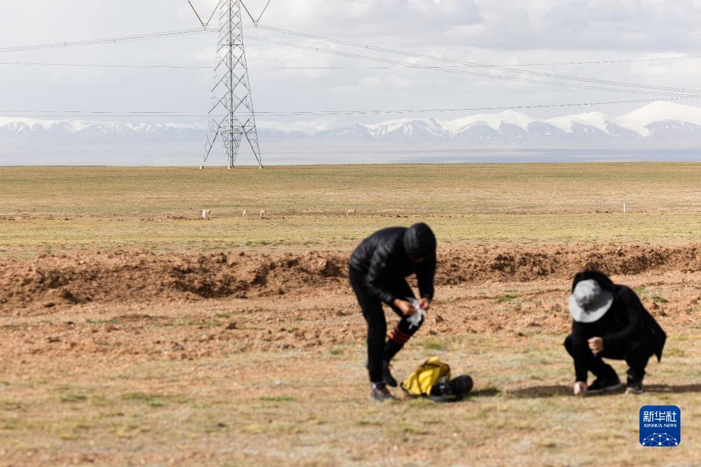 6月15日,中國科學(xué)院西北高原生物研究所研究員連新明(右)和他的學(xué)生王東在可可西里采集藏羚羊新鮮糞便樣本。