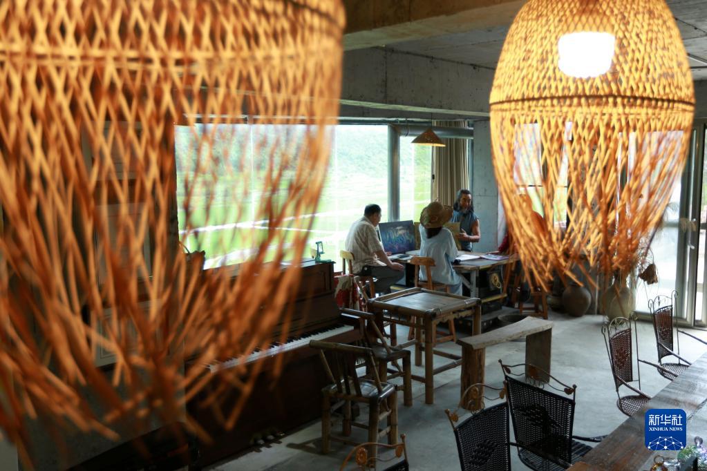 7月3日,在貴州省荔波縣朝陽(yáng)鎮洪江村,來(lái)自各地的藝術(shù)從業(yè)者進(jìn)行藝術(shù)交流。