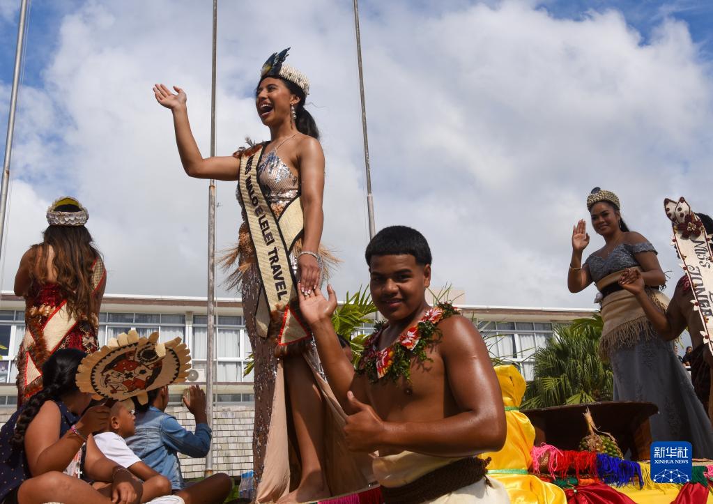 7月4日,人們在湯加首都努庫阿洛法參加花車(chē)游行。