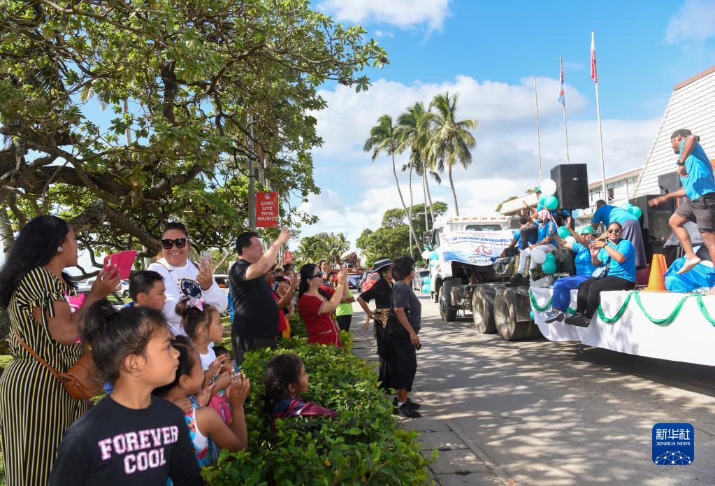 7月4日,人們在湯加首都努庫阿洛法觀(guān)看花車(chē)游行。