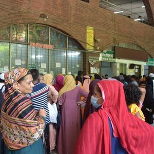 7月4日,在孟加拉國達卡一處醫院,人們等待就醫。