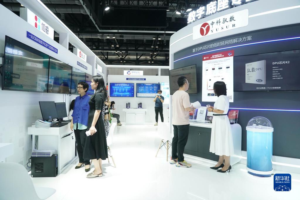 這是7月4日拍攝的2023全球數字經(jīng)濟大會(huì )精品主題展現場(chǎng)。