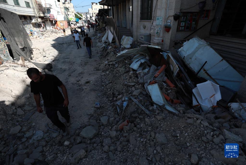 7月5日,人們走過(guò)約旦河西岸杰寧地區一處雜亂的街道。