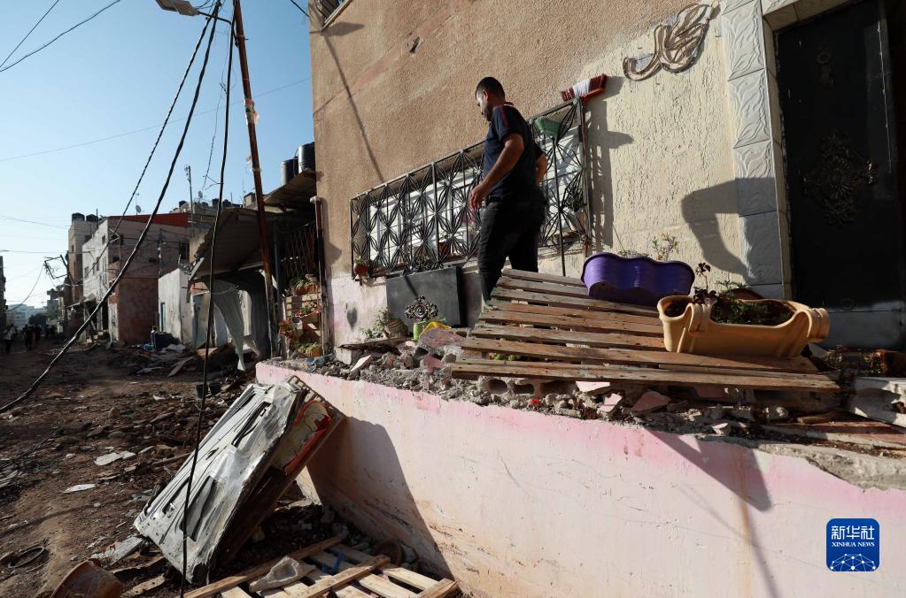 7月5日,一名巴勒斯坦人在約旦河西岸杰寧查看房屋受損情況。
