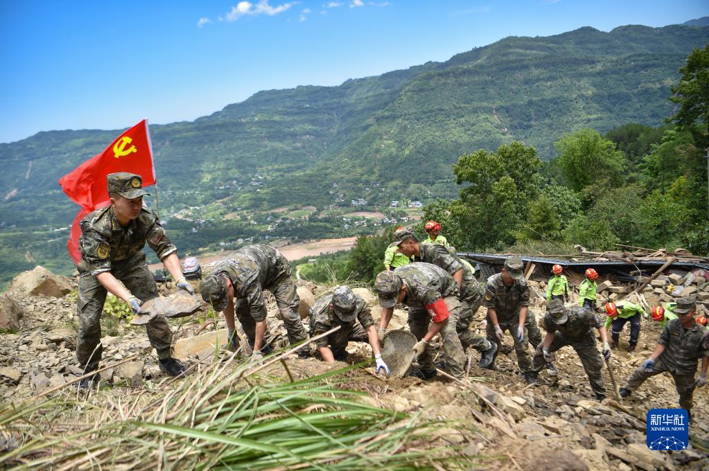 7月5日,在重慶市萬(wàn)州區長(cháng)灘鎮,武警官兵在開(kāi)展救援。