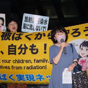 7月5日,抗議者在日本東京的東京電力公司總部前集會(huì )抗議核污染水排放入海計劃。