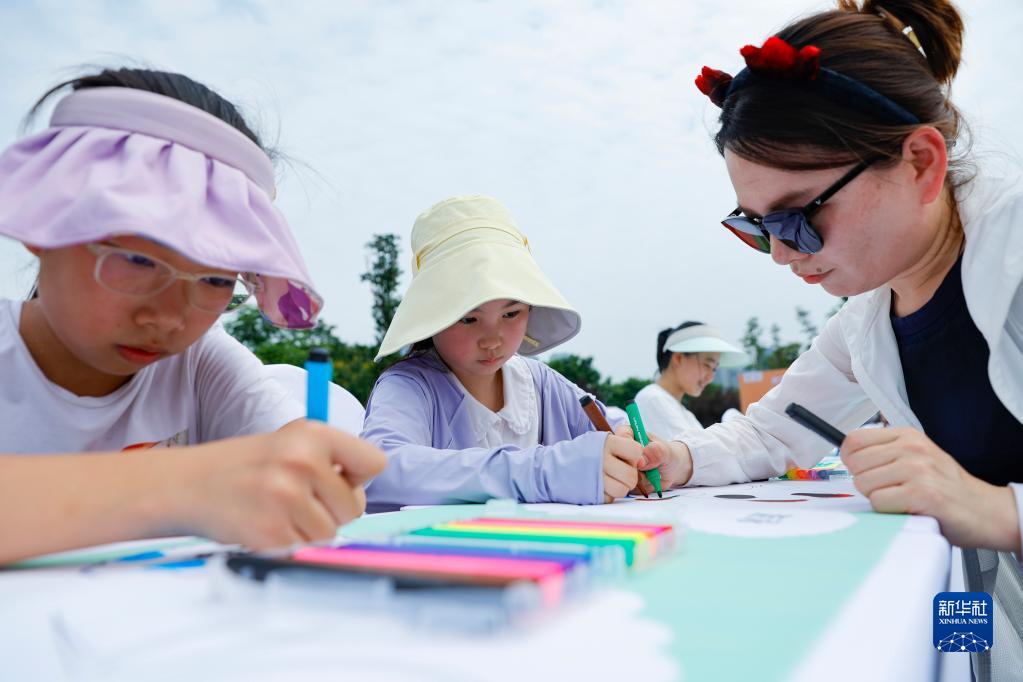 7月6日,孩子們與家長(cháng)一起繪制大運會(huì )主題長(cháng)卷。