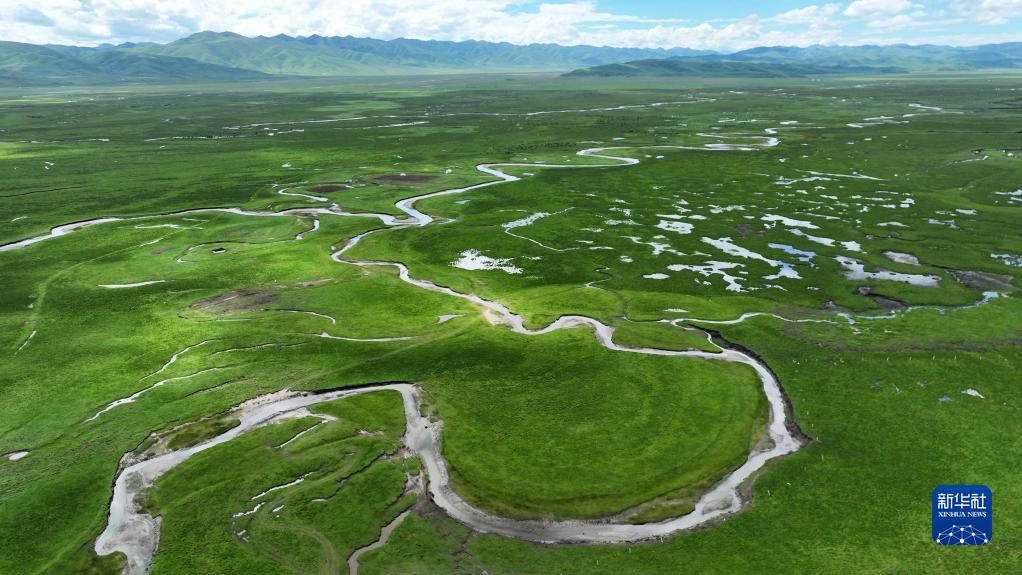 這是瑪曲縣阿萬(wàn)倉濕地景色(7月6日攝,無(wú)人機照片)。