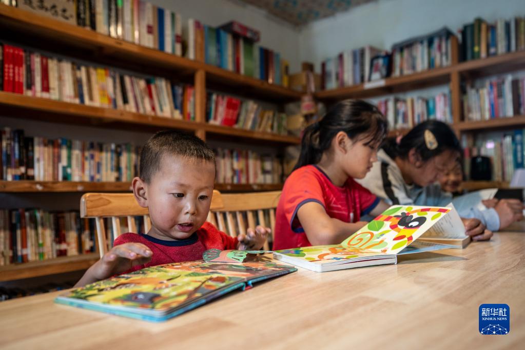7月5日,秋那桶村的小朋友們在“半山花語(yǔ)”書(shū)屋讀書(shū)。新華社記者 江文耀 攝