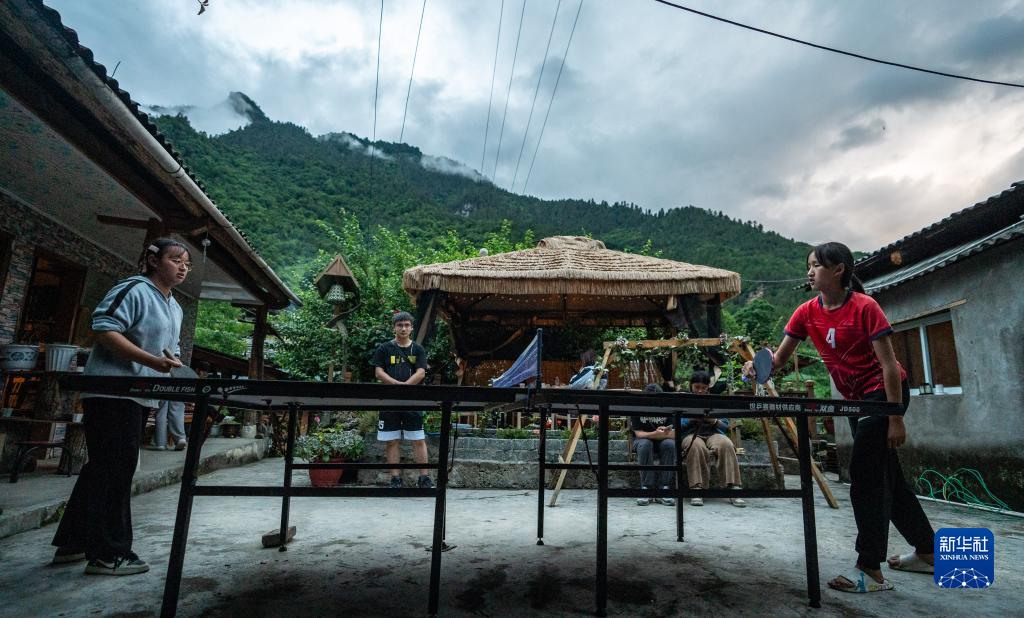 7月5日,秋那桶村的小朋友們在“半山花語(yǔ)”書(shū)屋的小院里打乒乓球。新華社記者 江文耀 攝