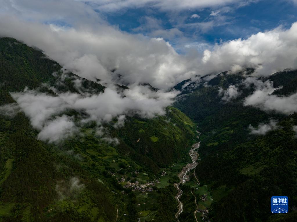 從空中俯瞰秋那桶村(7月5日攝,無(wú)人機照片)。新華社記者 江文耀 攝