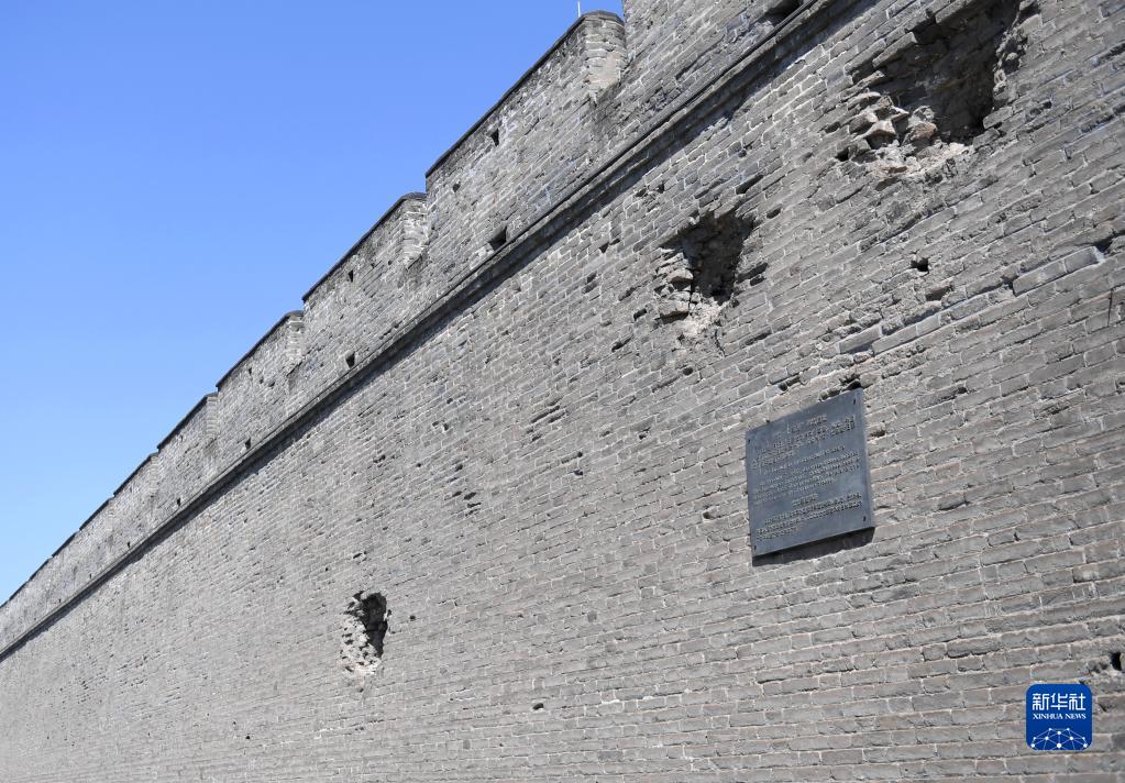 這是7月6日拍攝的宛平城城墻上的“七七事變”彈坑遺址。