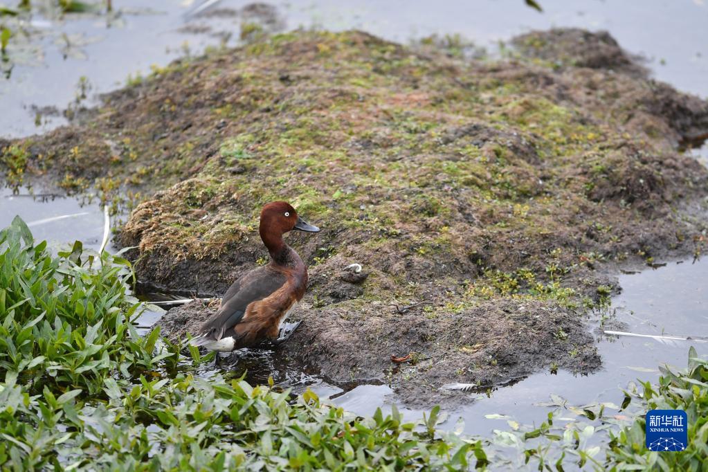這是在尕海濕地拍攝的白眼潛鴨(7月7日攝)。