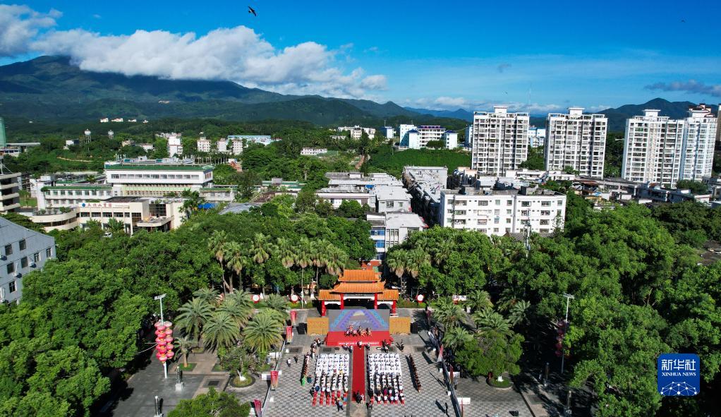 這是7月8日拍攝的五指山“上山爽一夏 故園·畢業(yè)季”暨州府故園文化節啟動(dòng)儀式現場(chǎng)(無(wú)人機照片)。
