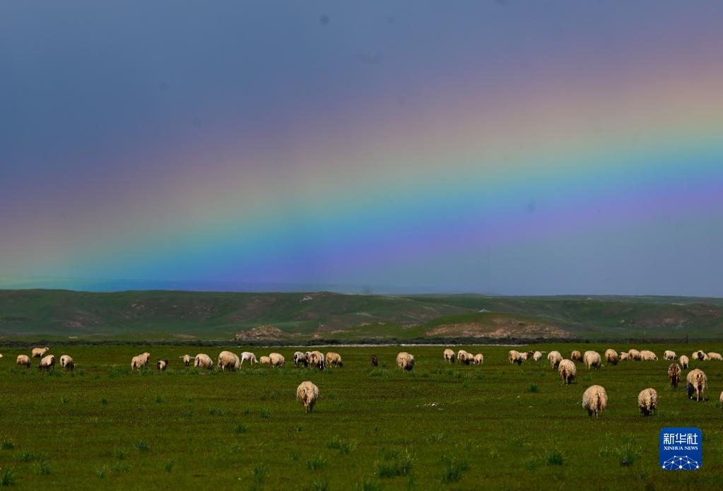 這是7月6日在位于青海省海西蒙古族藏族自治州的天峻草原上拍攝的羊群。