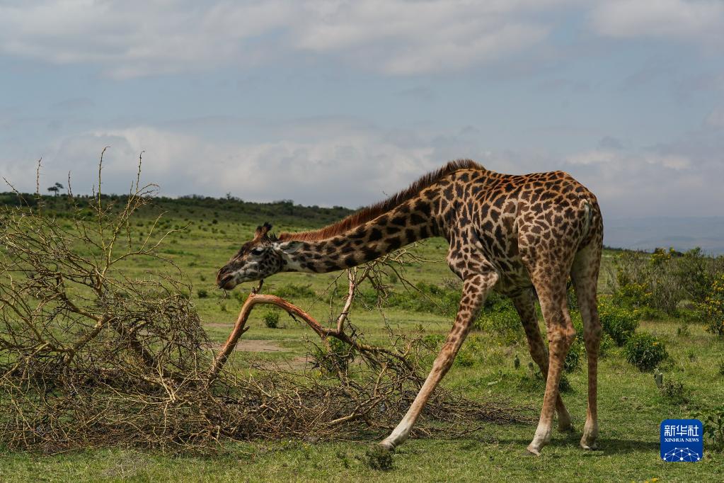 7月8日,一只長(cháng)頸鹿在肯尼亞奈瓦沙湖新月島上活動(dòng)。