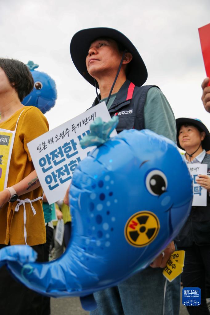 韓國市民團體“阻止日本放射性污染水排海全國行動(dòng)”8日舉行今年5月以來(lái)的第四次大規模集會(huì )。人們手持鯨魚(yú)模樣的藍色氣球,舉著(zhù)“反對排放放射性核污染水”等標語(yǔ),對日本政府不顧鄰國及國際社會(huì )擔憂(yōu)執意推動(dòng)核污染水排海計劃表示憤怒。