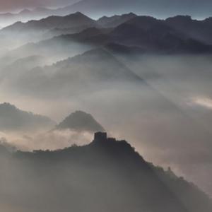 當日清晨,遷西縣境內的長(cháng)城附近晨霧繚繞,長(cháng)城、山峰、村莊、晨霧等呈現出壯美的水墨畫(huà)卷。