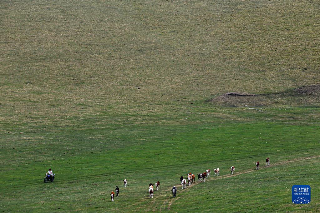 6月27日,巴達瑪斯仁在夏牧場(chǎng)趕牛。