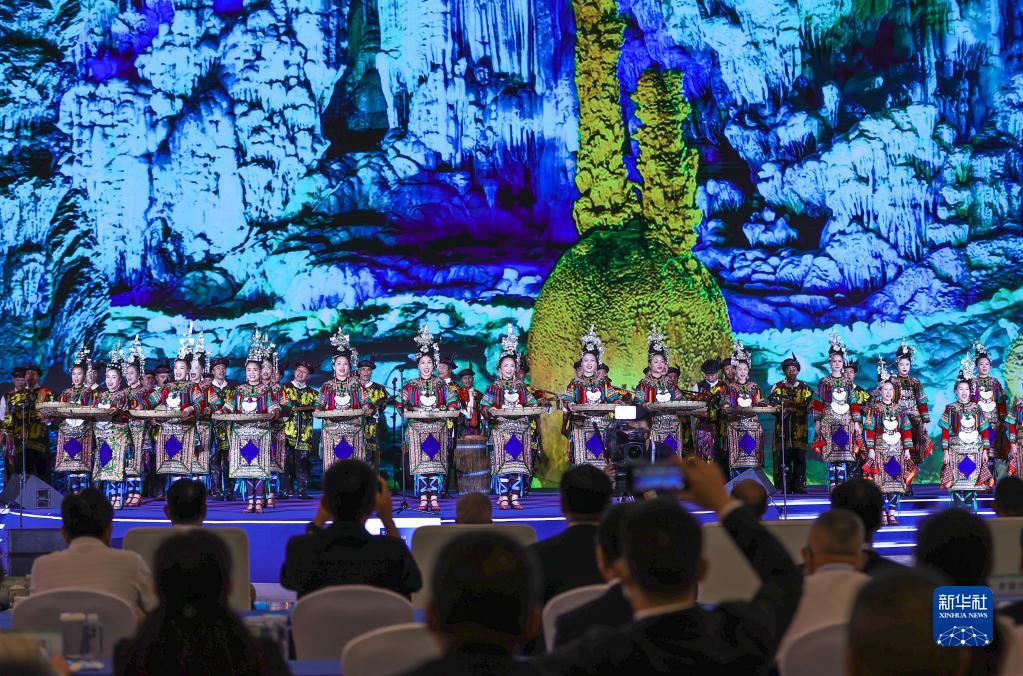 7月9日,演員在2023年生態(tài)文明貴陽(yáng)國際論壇閉幕式上演唱侗族大歌。