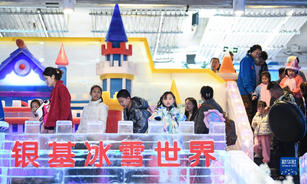 7月8日,游客在新密市銀基國際旅游度假區冰雪世界內游玩。