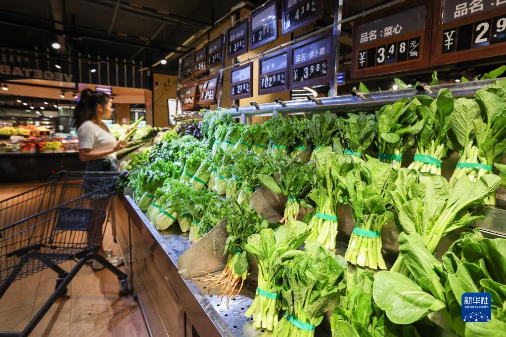 7月10日,顧客在貴州省黔東南苗族侗族自治州丹寨縣一家超市選購蔬菜。