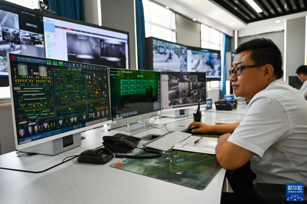 7月8日,在大唐龍王溝煤礦,工作人員在操作智慧調度系統。