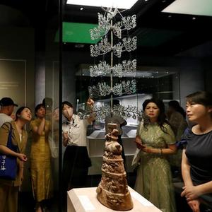 7月10日,參觀(guān)者在東漢搖錢(qián)樹(shù)展柜前駐足觀(guān)看。