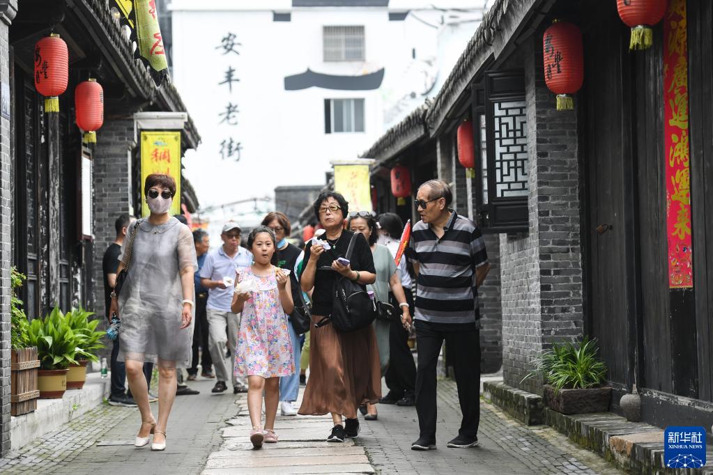 7月10日,游客在東臺安豐老街游玩。