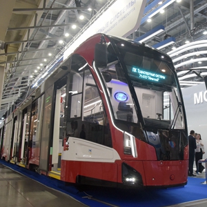 7月10日,一款配備自動(dòng)駕駛系統的有軌電車(chē)在俄羅斯葉卡捷琳堡市舉行的國際創(chuàng )新工業(yè)展上展出。