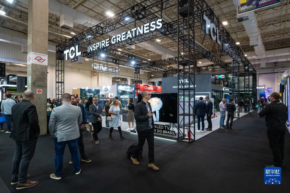 這是7月10日在巴西圣保羅舉行的國際消費類(lèi)電子及家用電器產(chǎn)品展覽會(huì )上拍攝的TCL公司展臺。