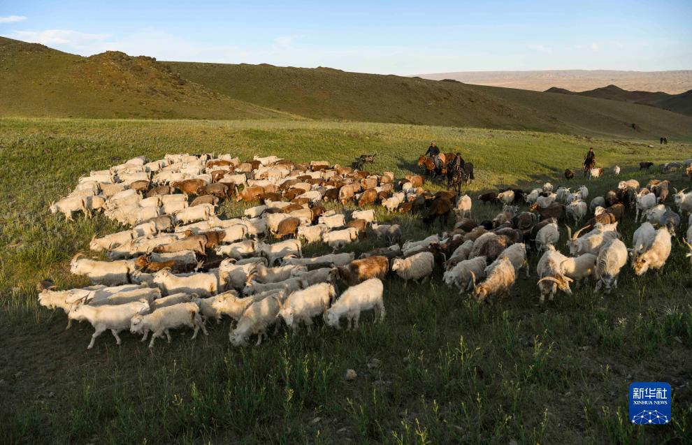在巴爾魯克山深處,轉場(chǎng)隊伍向更高海拔的夏季牧場(chǎng)前行(7月3日攝)。