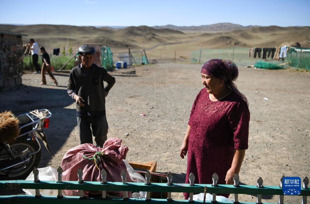 巴哈提和丈夫在門(mén)前小院內商量轉場(chǎng)需要攜帶的物資(7月3日攝)。