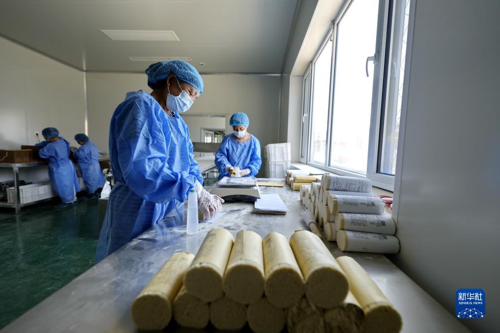 7月11日,河北省遷安市野雞坨鎮丁莊子村一家食品生產(chǎn)企業(yè)的工人在包裝空心掛面。