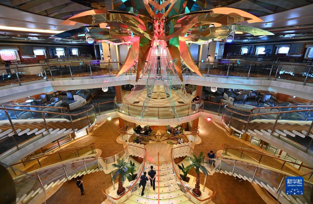 這是7月11日拍攝的天津東方國際郵輪有限公司旗下“夢(mèng)想”號郵輪內景。