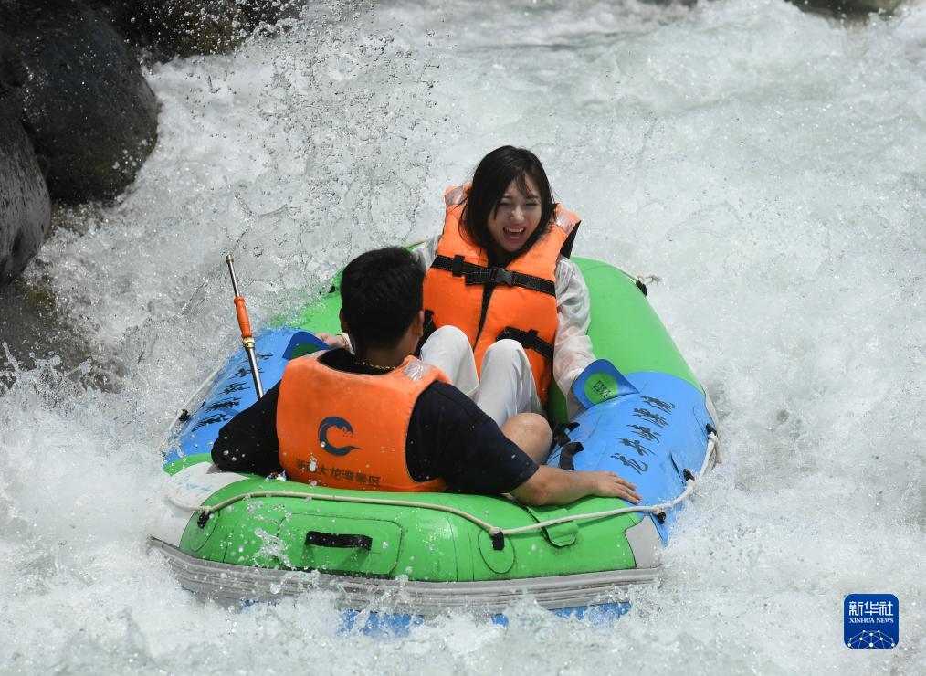 7月11日,人們在杭州臨安龍崗鎮浙西大龍灣體驗峽谷漂流。