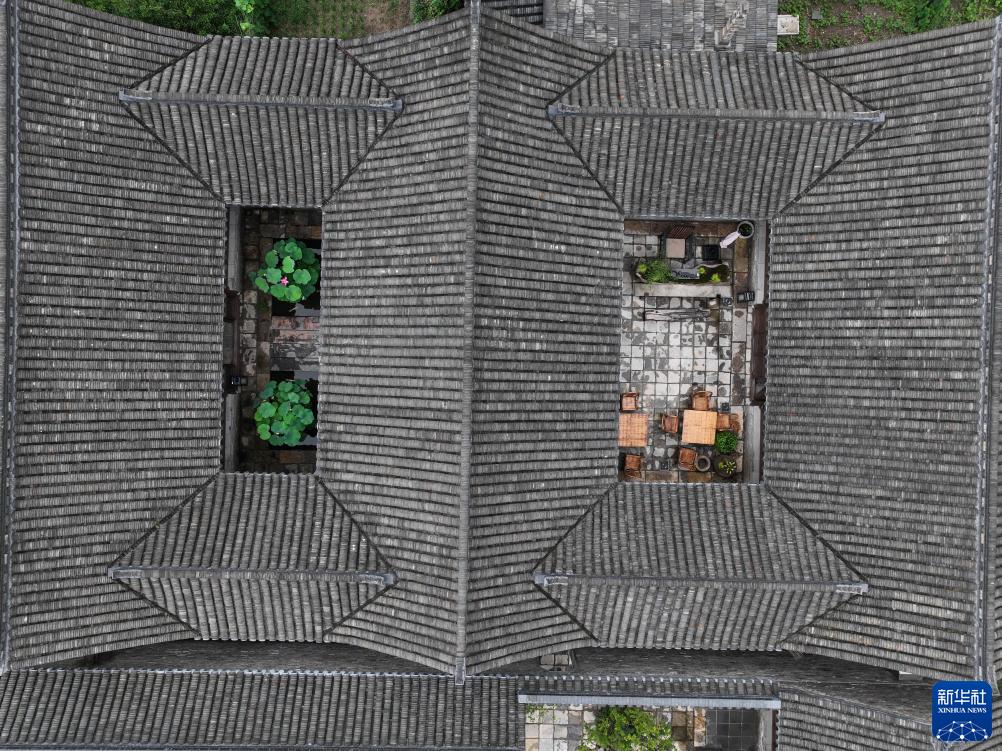 7月11日拍攝的穆溝古村的建筑(無(wú)人機照片)。
