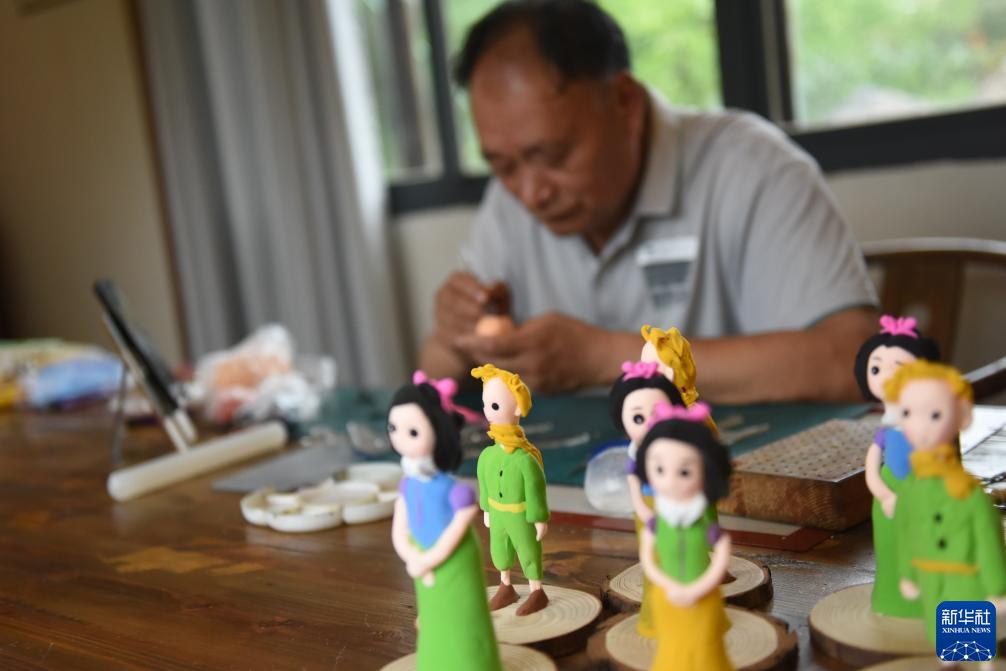 7月11日,江蘇省級非物質(zhì)文化遺產(chǎn)“阜寧面塑”傳承人周必良在穆溝古村進(jìn)行創(chuàng )作。
