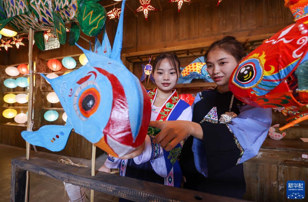 7月11日,游客在貴州省遵義市播州區烏江寨景區一家燈籠作坊選購手工燈籠。