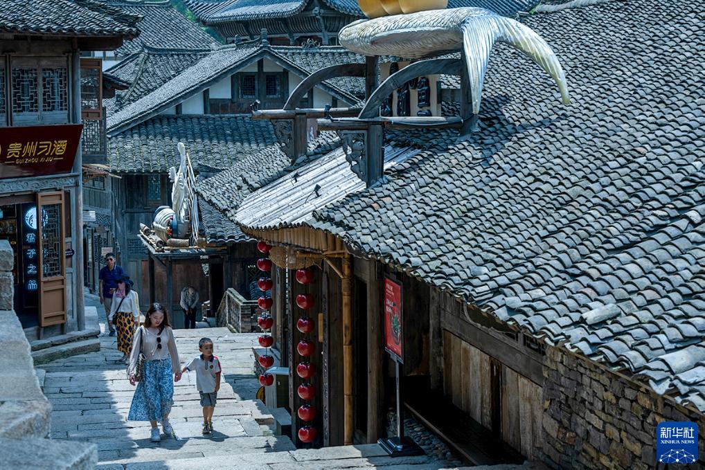 7月11日,游客在貴州省遵義市播州區烏江寨景區游覽。