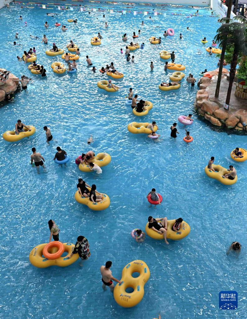 當日是入伏第一天,人們來(lái)到海邊、泳池和水上樂(lè )園戲水消暑,暢享清涼。
