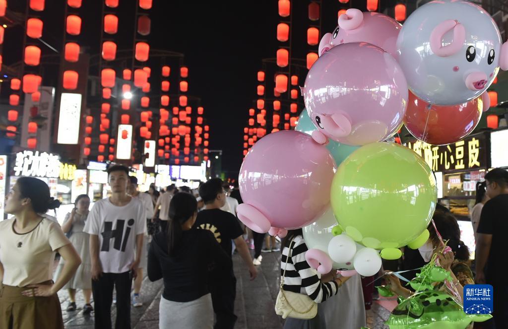 這是7月11日晚拍攝的洛陽(yáng)十字街小吃一條街夜景。