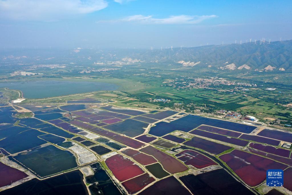 這是無(wú)人機拍攝的運城鹽湖(7月11日攝)。