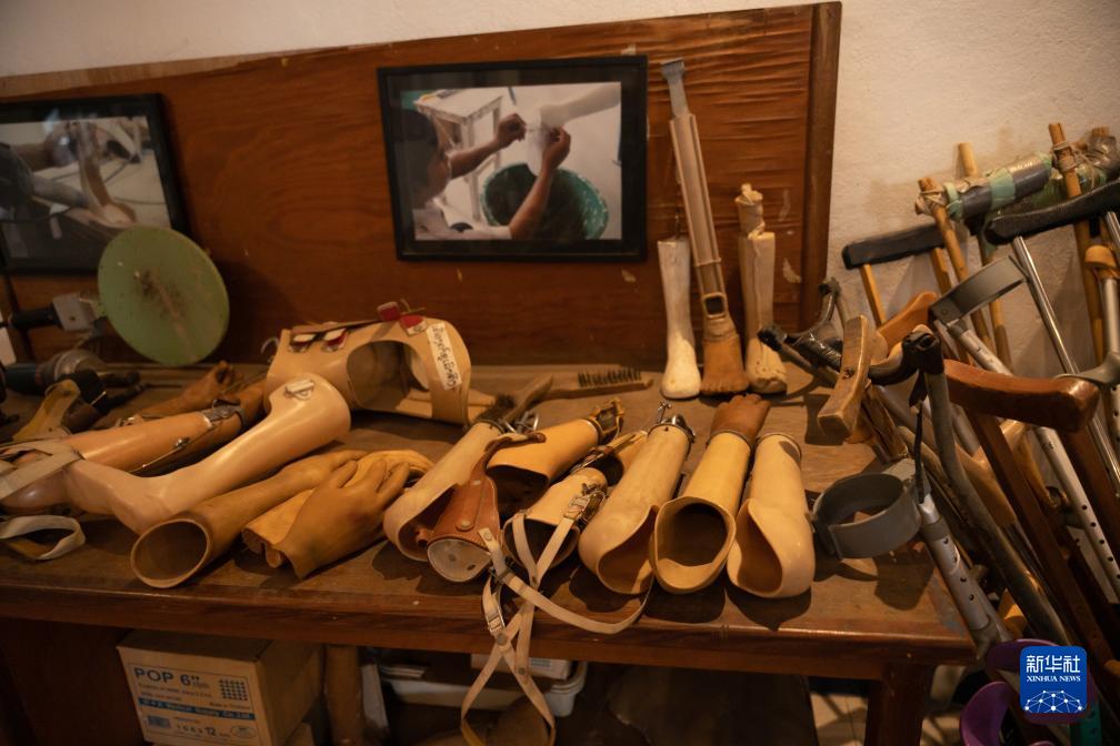 這是7月11日拍攝的老撾首都萬(wàn)象“義肢與矯形合作事業(yè)”展館里展示的未爆彈受害者使用過(guò)的義肢與矯形器等。