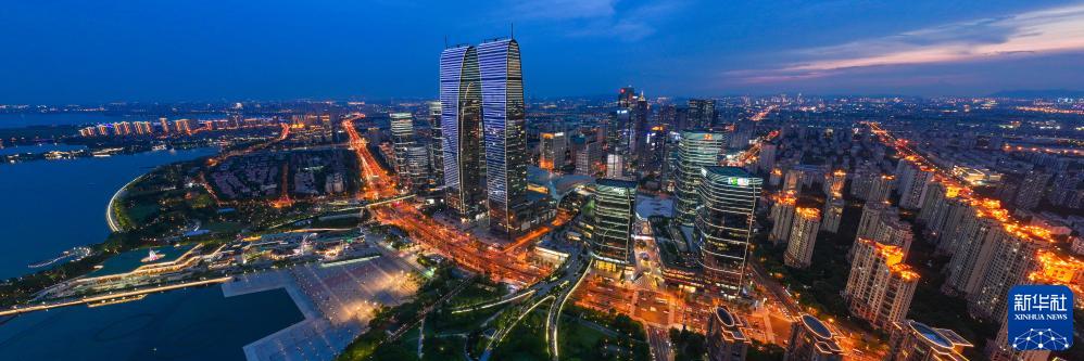 蘇州工業(yè)園區夜景(無(wú)人機照片,7月3日攝)。