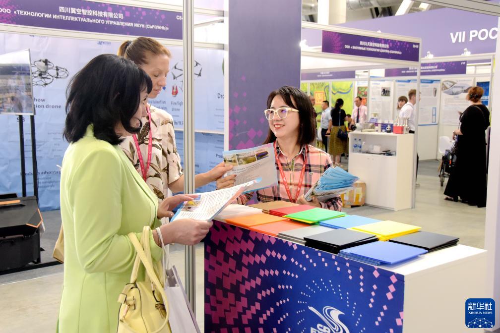 7月11日,在俄羅斯葉卡捷琳堡舉辦的第七屆中俄博覽會(huì )上,參觀(guān)者與中方參展代表交談。