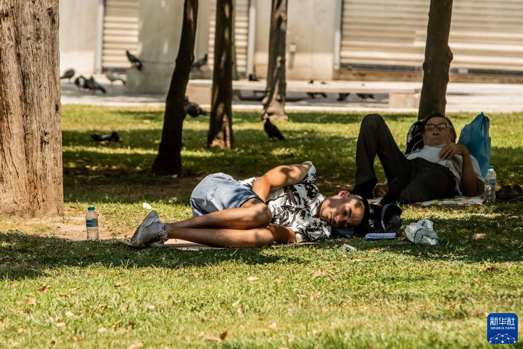 7月12日,在希臘雅典,人們在樹(shù)蔭下休息。
