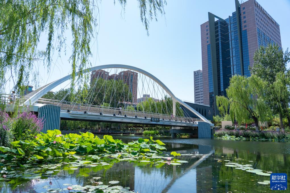 這是北京亮馬河友誼橋一景(6月21日攝)。
