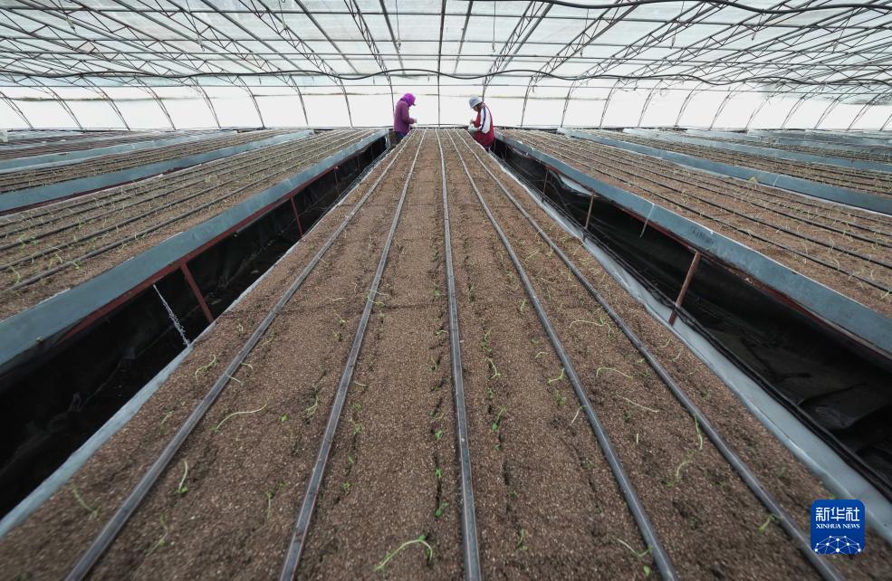 7月13日,河北省沽源縣黃蓋淖鎮一家馬鈴薯育種中心的工人在育種床上栽植馬鈴薯組培苗。新華社記者 楊世堯 攝