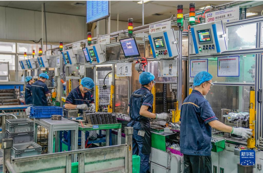 7月13日,工作人員在南方天合底盤(pán)系統有限公司車(chē)間內作業(yè)。
